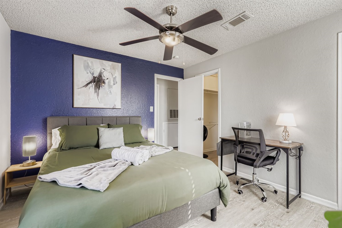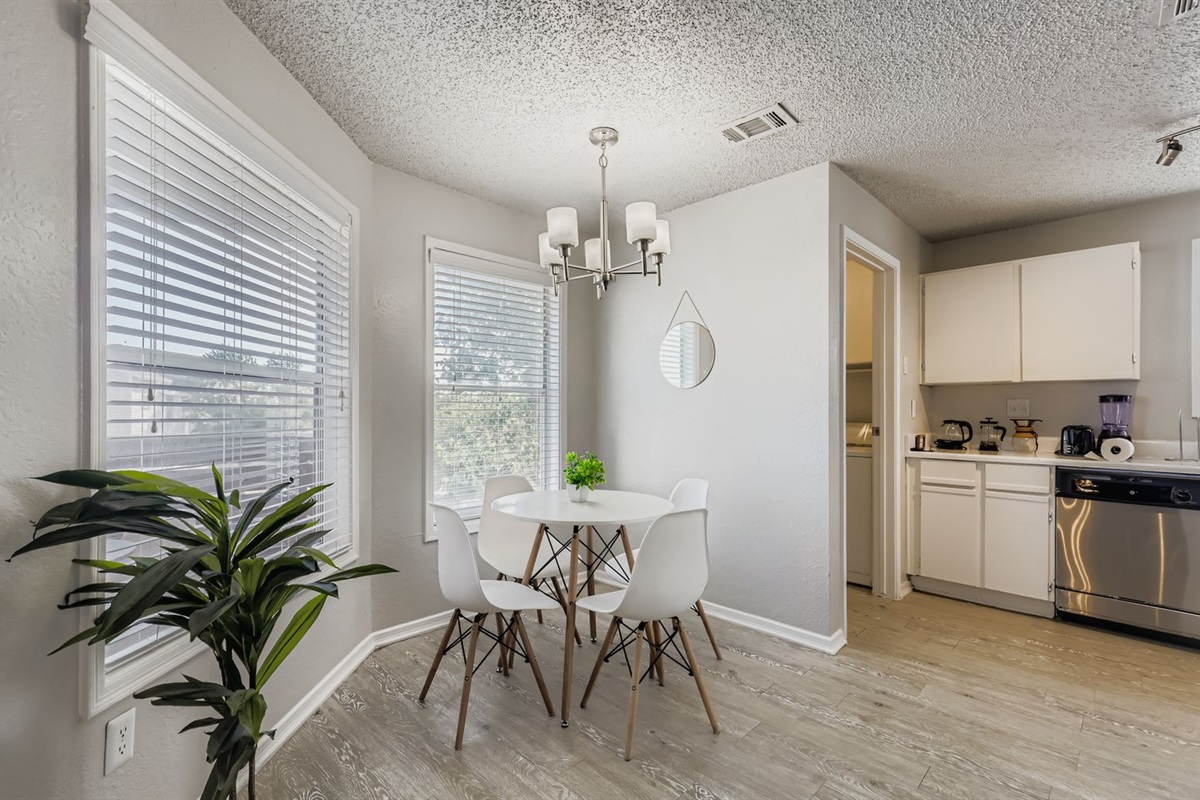2 Bedrooms • 2 Bathrooms 2 Baths • Sleeps 3-6We're excited to welcome you to this 3rd floor mid-century modern styled apartment with Smart TVs and walking distance to local amenities such as the local grocery stores, restaurants and nearby community bars/restaurants. In addition to this, nearby highway access makes commuting to midtown/downtown Austin and Cedar Park, Round Rock, and Leander a breeze. In addition to this, we're located approximately 10 minutes from the domain when commuting outside of peak hours.